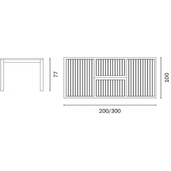 Rechteckiger Gartentisch ausziehbar durch die Mittelplatte von 100 cm (von 200 cm bis 300 cm)