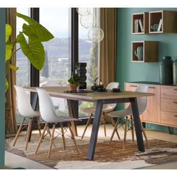 Tisch 200x90 cm Eiche natur mit lackierten anthrazitgrau Metallbeinen