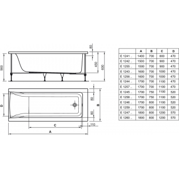 Vasca rettangolare da incasso 140x70 serie Connect Air Ideal Standard
