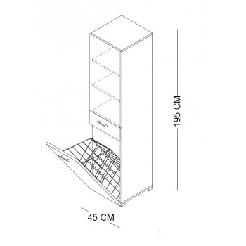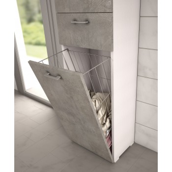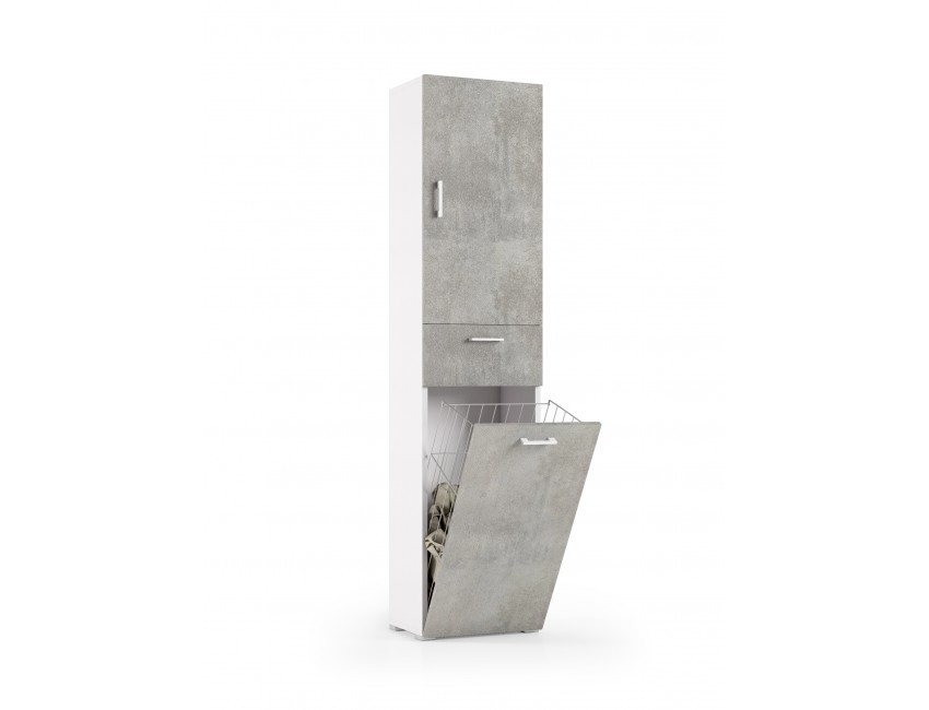 Wäscheschrank 45X195H Zement und Weiß holz mit Schublade tür und Wäschekorb