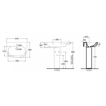 Aufgehängt/auf Säule Waschbecken 64,5 cm