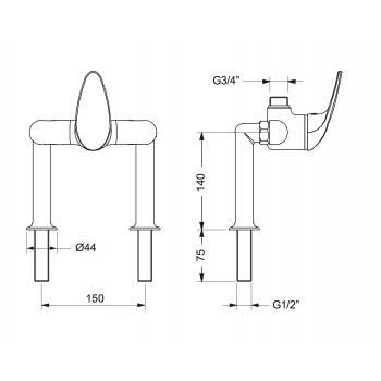 Einhebel-Doppelblattmischer mit kurzer Hebelbetätigung, kleinen Halterungen für den flachen Einbau und 3/4"-Oberauslauf.