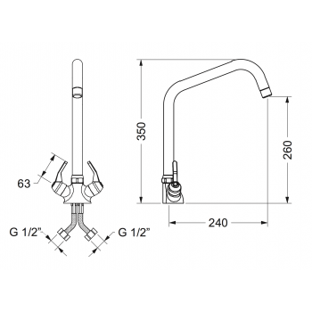 Idral Kombination aus Zweigriffmischer mit hohem Volumendurchsatz KPR00-240/42