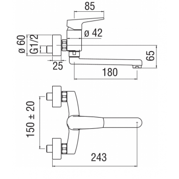 Waschtischmischer Onda aus verchromtem Messing mit Abfluss