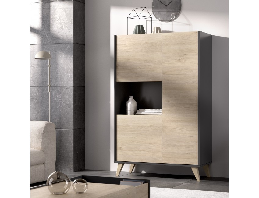 Wohnzimmeranrichte 135 cm Abby Graphit und natürlich mit drei Türen
