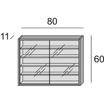 • Schaufenster mit zwei Glasschiebetüren und 4 verstellbaren Inneneinlegeböden.
