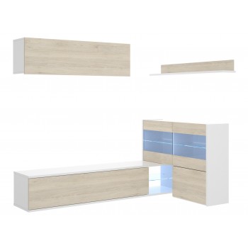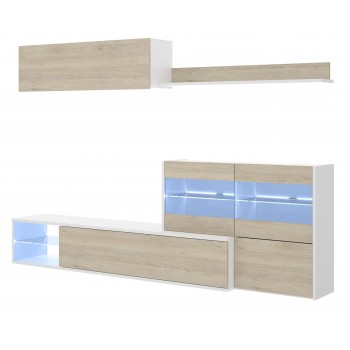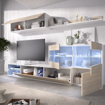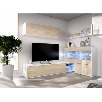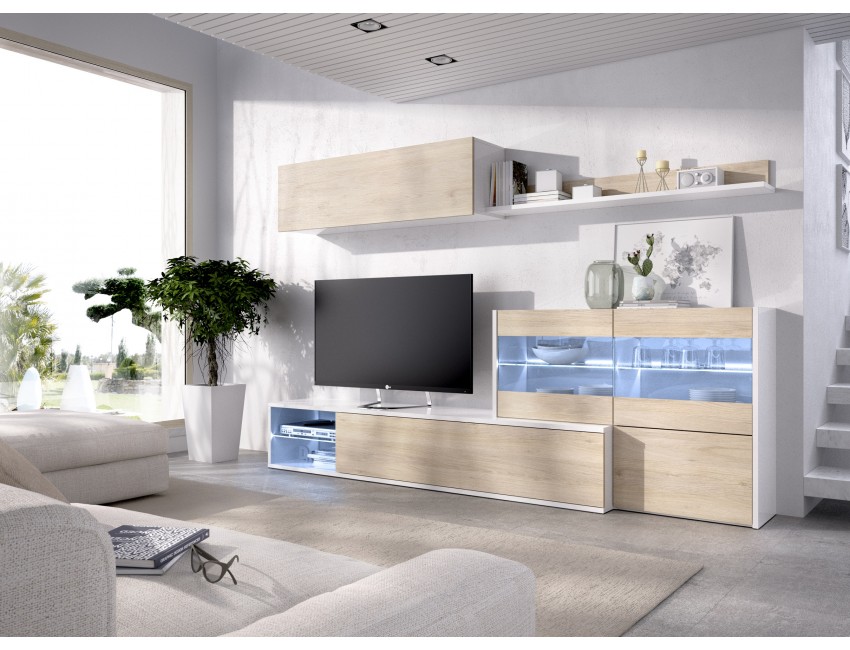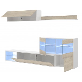 Wohnzimmer-TV-Schrank 260 cm Grace glänzend weiß und naturfarben