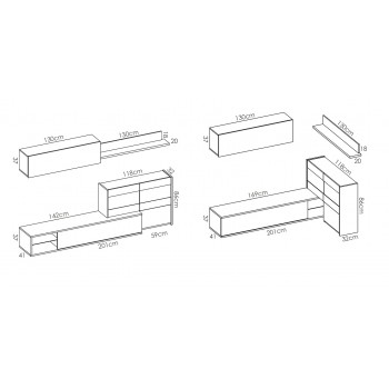 Abmessungen TV-Schrank: 260 cm (Breite) x 41 cm (Tiefe) x 86 cm (Höhe)