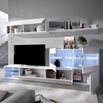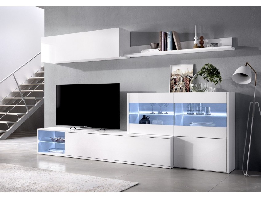 Wohnzimmer-TV-Schrank 260 cm Grace glänzend weiß