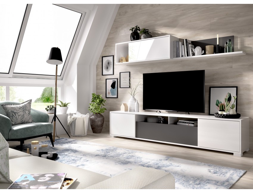 Wohnzimmer-TV-Schrank 200 cm Madison Glänzend Weiß und Graphit