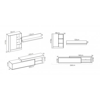 Abmessungen TV-Schrank: 200 cm (Breite) x 41 cm (Tiefe) x 46 cm (Höhe)