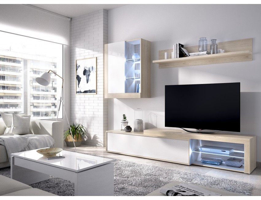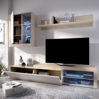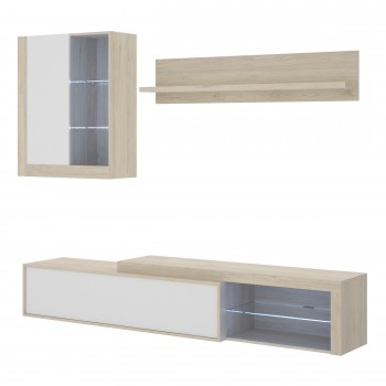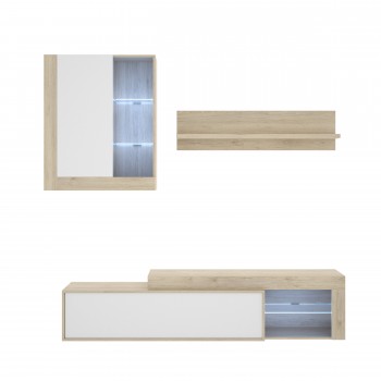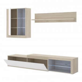 Wohnzimmer-TV-Schrank 260 cm Margaret Glänzend Weiß und Natürlich mit Led