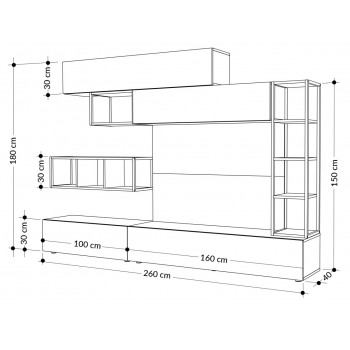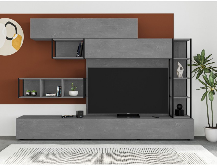 Dieses Wohnzimmer set ist so konzipiert, dass es funktional ist, um bequem fernzusehen und viele Gegenstände geordnet zu lagern. Es lässt sich außerdem leicht mit jeder Art von Möbeln kombinieren und ist sehr ästhetisch ansprechend.