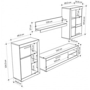 Dieses Wohnzimmer set ist so konzipiert, dass es funktional ist, um bequem fernzusehen und viele Gegenstände geordnet zu lagern. Es lässt sich außerdem leicht mit jeder Art von Möbeln kombinieren und ist sehr ästhetisch ansprechend.