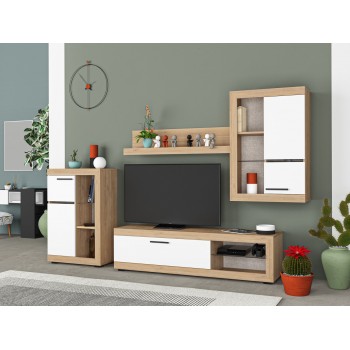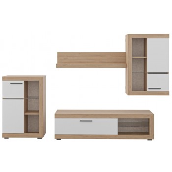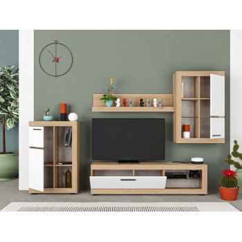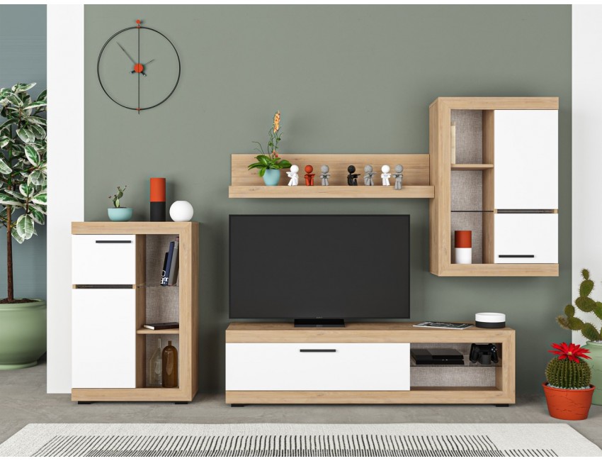 Wohnzimmer set Tv Maya Eiche hell und Mattweiß