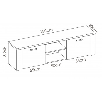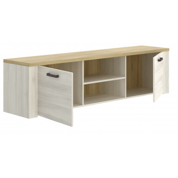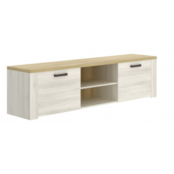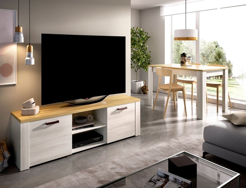 • TV-Schrank, geeignet für große TV-Geräte. Ausgestattet mit zwei sichtbaren Fächern und zwei Türen.