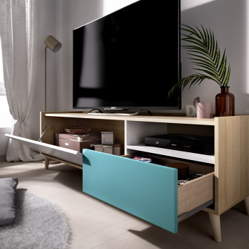 Unsere TV-Schränke sind unentbehrliche und hochfunktionelle Einrichtungsgegenstände. Sie ermöglichen es, alle Arten von Zubehör in ihren Türen geordnet aufzubewahren, und passen sich gleichzeitig perfekt an die verschiedenen Einrichtungsstile der Räume an, in denen sie aufgestellt werden.