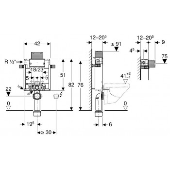 Combifix Modul für wandhängendes WC 82 cm mit Omega 12 cm Spülkasten Geberit 110.000.00.1