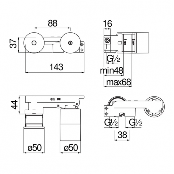 • Attacco fori: Ø50 mm G1/2”