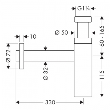Sifone per lavabo o bidet Hansgrohe Accessori e ricambi 52105000, in ottone, colore cromo, 33 cm lunghezza, 5 cm larghezza, 28 cm altezza, 7.2 cm diametro.