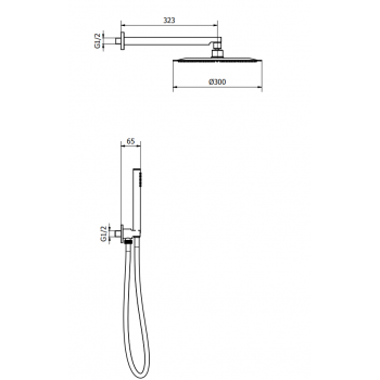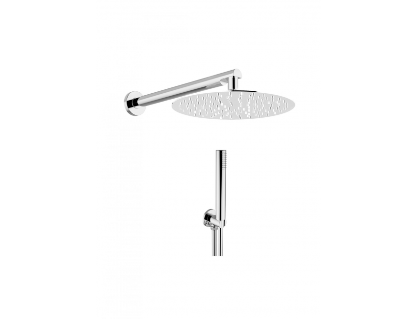 Kit completo di soffione Ø30 cm doccia con installazione a parete e doccino con supporto, finitura cromata.