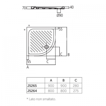 - Da completare con piletta sifonata da 90 mm (non inclusa)