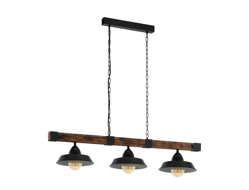 Lampada a sospensione vintage Eglo in metallo nero e supporto in legno 220-240 V IP20