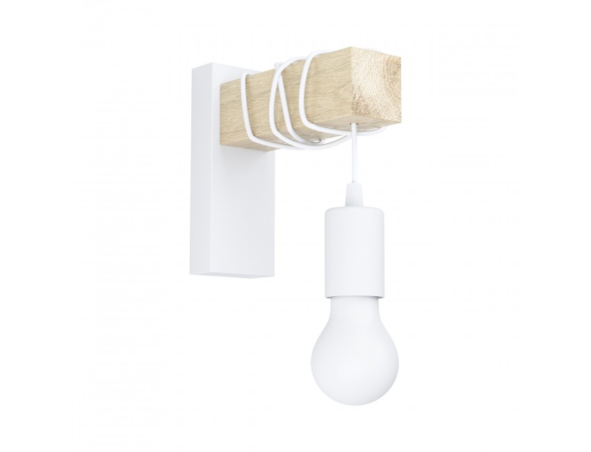 Applique da parete vintage Eglo in metallo bianco e supporto rovere chiaro 220-240 V IP20