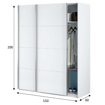 Armadio 150x200H cm Bianco opaco 2 ante scorrevoli