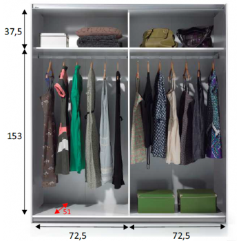 Questo armadio è progettato per essere funzionale grazie ai due ripiani interni ed alle due aste appendiabiti. Risulta anche facile da abbinare con qualsiasi tipologia di arredamento e molto gradevole esteticamente