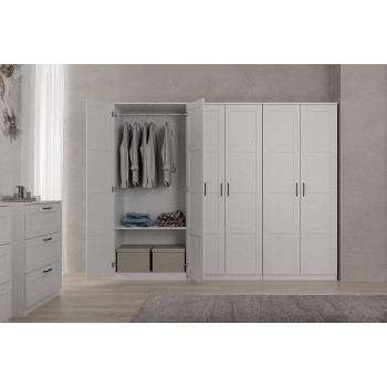 - Dotato di un ripiano regolabile e barra appendiabiti;
