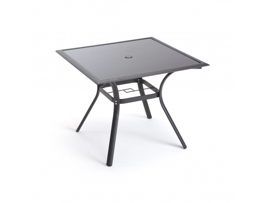 TAVOLO GIARDINO QUADRATO ESTERNO 90X90 ALLUMINIO NERO FERRO PIANO IN VETRO TEMPERATO ARREDO