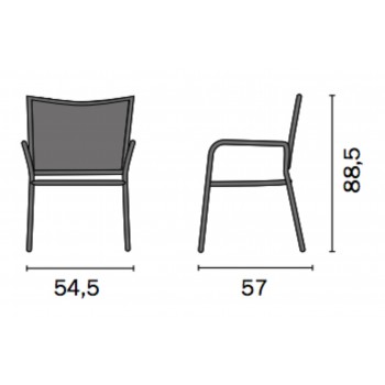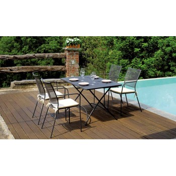 La sedia è munita di braccioli ed è trattata con vernice antiruggine.