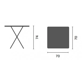 - Ha un piano quadrato con lato da 70 cm e gambe pieghevoli per spostarlo o ritirarlo facilmente.