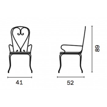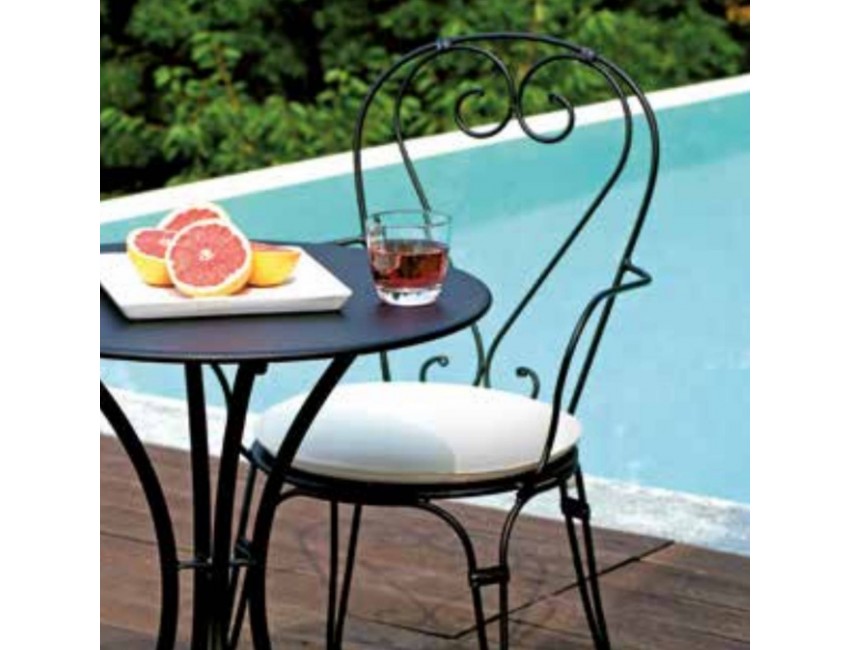 Sedia perfettamente abbinabile a tutti i tavoli in ferro. La sedia, munita di braccioli, è impilabile ed è realizzata interamente in ferro, colore nero; il prodotto è sottoposto a uno speciale trattamento antiruggine.