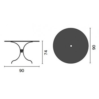 - Il piano è tondo, con un diametro di 90 cm e un foro al centro per fissare un ombrellone.