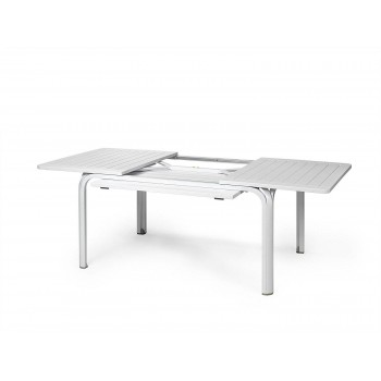 Il tavolo Alloro ha la struttura in alluminio verniciato a polveri di poliesteri, con sistema di piedini regolabili e il piano in Durel-Top da 25 mm di spessore.