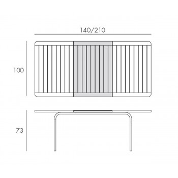 DIMENSIONI TAVOLO: L 140/210 x P 100 x H 73 cm