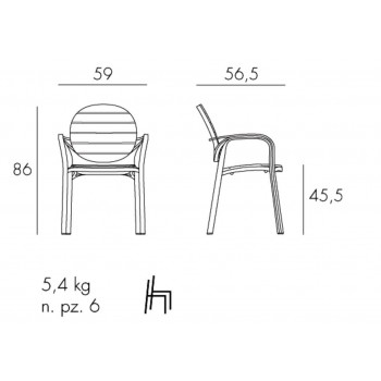 Le sedie Palma sono in polipropilene, con struttura tubolare e gambe dotate di piedino antiscivolo. Questa sedia impilabile è dotata di braccioli e garantisce una seduta comoda ed ergonomica, oltre ad un design particolarmente piacevole.