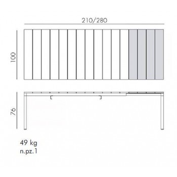 DIMENSIONI TAVOLO: L 210/280 x P 100 x H 76 cm