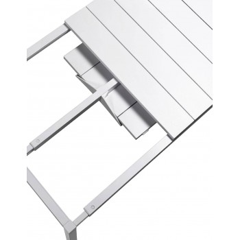Il piano del tavolo è in materiale innovativo Durel-Top che conferisce resistenza, robustezza ed inalterabilità al sole e all'acqua. La verniciatura delle gambe è a polveri poliesteri epossidiche che garantiscono resistenza alla corrosione e agli agenti chimici e fisici.