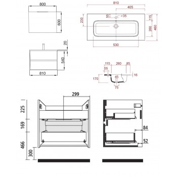 Dimensioni mobile: L 81 x P 46 x H 56 cm