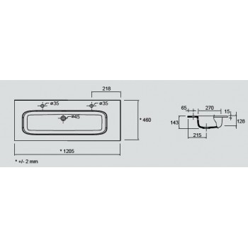 Dimensioni: L 1210 x P 460 x H 15 mm