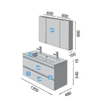 Dimensioni: L 1200 x H  650 x  P 150 mm