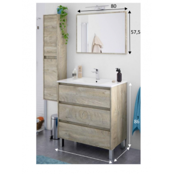 Mobile bagno a terra 80 cm Rovere con specchio e lavabo