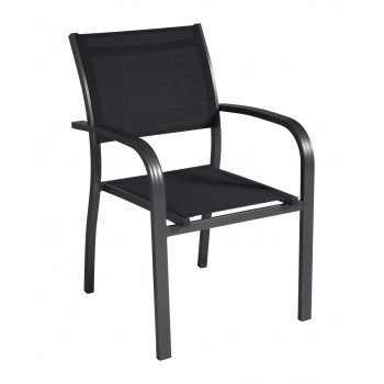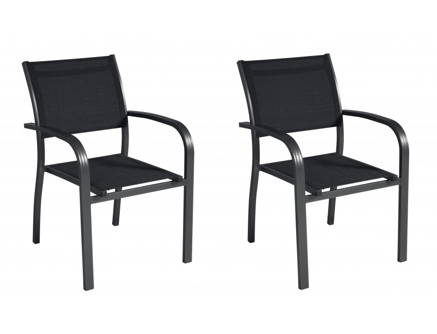 Set 2 Sedie impilabili in alluminio verniciato Grigio antracite e textilene Nero