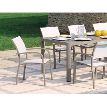• Presentano una struttura in alluminio verniciato Tortora e braccioli