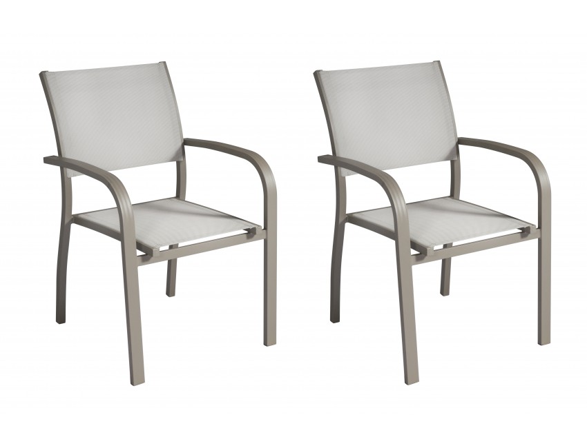Set 2 Sedie impilabili in alluminio Tortora e textilene Grigio chiaro