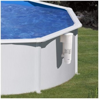 • Parete con lamiera in acciaio galvanizzato di 40/100 di spessore. La lamiera è ritagliata per lo skimmer filtrante