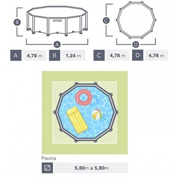 - Scala di sicurezza con 4 gradini esterni, 4 gradini interni e piattaforma nella parte superiore (i gradini sono rimovibili per rendere impossibile l'accesso alla piscina)